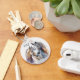 This keychain features a beautiful boho style painting of two gray and brown horses standing together. Your monogram is at the upper left side, and everything is placed on a white background. The back has your text in two fields.