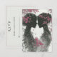 Cute wedding response card for Lesbian, LGBTQ couple. Two hand drawn, silhouette pink and black brides, standing face to face with pink leaf accents. They have their hair up and pink roses in their hair, cute pencil drawing for your special day.