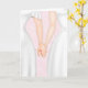 A wedding congratulations card for a lesbian wedding. Design features two brides in wedding gowns on soft pink background. (Created with original artwork©delightful-doodles.com)