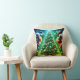 This colorful Christmas throw pillow has two different Christmas tree scenes, one for each side.