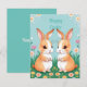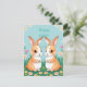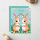 Garden Flowers Two Cute Rabbits Big Ears Happy Easter