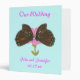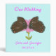 A lovely painting of two brown butterflies enjoying a pink flower together, with Our Wedding, printed on 3 ring custom binders. Easily customize the names and date on the template forms. Matching Products: