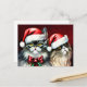 Christmas postcard. Two long haired cute cats posing in their Santa hats painting