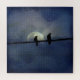 Two crows bask in the moonlight as they are perched on a wire.
