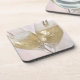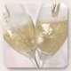 Two champagne flutes being filled with sparkling coaster