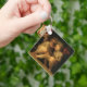 The key chain is made of metal and really sturdy. The flower design is really cheerful. The logo and colors are clear and crisp!