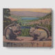 This guestbook for your events and parties has two chipmunks sitting on a tree stump with a view of pretty mountains with trees and a lake behind them. Customize your names and date with the template.
