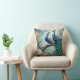 Two Colorful Peacocks Perched Among Roses Throw Pillow