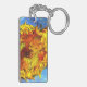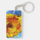 Keychain featuring Vincent van Gogh’s oil painting Two Cut Sunflowers (1887). Two beautiful yellow sunflowers lay against a vibrant blue background. A wonderful gift for fans of Post-Impressionism and Dutch art.
