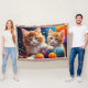 Two Cute kittens with balls of yarn and Planets Throw Blanket