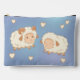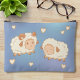 Two Cute Little Sheep Ram Ewe on Blue Accessory Pouch