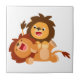 Two Cute Playful Cartoon Lions Tile