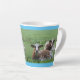 Two Cute White-Brown Cows Cust. Blue Latte Mug