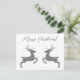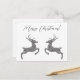 Destei's digitally created jumping deer shapes in faux silver gray glitter texture. The two deer are facing each other and there is a personalizable text area that now reads: "Merry Christmas!". PLEASE NOTICE: The design is a digitally created image that will be printed on the product.