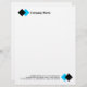 A Business letterhead template design with a two tone double square or diamond shape decorative motif placed in the top left corner 1/2inch from the paper's edges and also in the bottom right corner where the motif is flipped so the tones are reversed. Company Name aligned next to the top motif with email, web, address and telephone details aligned next to the bottom motif. This simple but attractive professional design can be customized in many ways.
