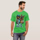 My 11 yo wore adult XL (5’7” 165#). The 8yo is small framed. She wore adult small and tied it in the back. Grandma wore adult large with long sleeve shirt underneath. Tall girl adult medium. Dark haired male adult large. Good quality dark Heather gray, Gildan brand shirt. -it was next up from basic choice and cost about $20 per shirt. Not too thick or thin. Washed and dried well, no major shrinkage. Not see-through. Can wear a bra under it fine. Screen print is just as shown and well done, front and back.