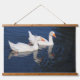 A photo of two pure white Emden or domestic geese. Taken at Roath Park Lake, Cardiff, Wales.