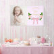 She's two fancy! 2nd birthday collection featuring a dainty pink bow amongst a wreath of roses. Gold script typography against a pastel purple background. Photo template via Pixabay licensed under CC0 and must be replaced with your own photo