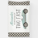 Growing up Two Fast Race Car 2nd Birthday party banner with blue race car.