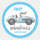 Two Fast Blue Race Car 2nd Birthday Invitation Classic Round Sticker