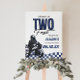 Your little guy is growing up TWO FAST! Celebrate your sons 2nd birthday with our blue, black and white speedster birthday welcome sign.