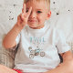 The t-shirt is designed for a 2-year-old birthday boy, it has a bright light blue bike and the word "Two" is written in bold, stencil like font. The shirt is perfect for the little one to wear on his birthday party, or to playdates with friends and family. It will make him feel special and bring a big smile to everyone's face.