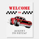 Two Fast Modern Red Race Car Boy 2nd Birthday Sign