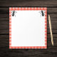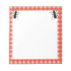 This notepad is white with a red and white plaid border that resembles a picnic tablecloth with two fun big black ants at the top.