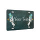 This decorative license plate for your car has two white fancy ghosts floating in a star filled night sky wearing blue top hats and holding black and gold skull canes. Customize your text with the template.