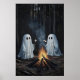 Two Ghosts By Campfire In Woods With Marshmallows Poster