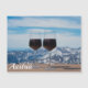 Two glasses of red wine against mountain background. View of snowy peaks in the mountains...