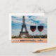 Two glasses of wine on Eiffel tower and Paris skyline background.