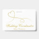NewParkLane - Elegant personalized wedding badge, for the wedding planner or wedding party, with two faux gold swirly hearts, against a white background, and with elegant script typography.