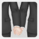 A wedding sticker featuring two grooms in tuxedos on gray striped background. (Created with original artwork©delightful-doodles)