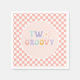 Two groovy Retro checker print with Daisies Birthday party napkins in pink.