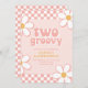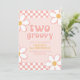 Two Groovy Retro Check Pink Daisy Invitation