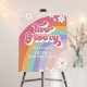 Two Groovy Retro Rainbow with daisies welcome sign.