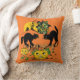 Two Halloween Black Cats and Haunted House Throw Pillow