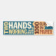 Humanists and Atheists unite! The quote you know and love: "Two hands working do better than 1000 clasped in prayer". Silence the carload of recreational church-goers behind you buy making 'em stare at this for the duration of a stoplight or two.