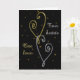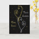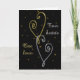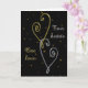 This is an elegant wedding anniversary card, with a gold swirl heart image entwined with a silver heart image, and placed on a dramatic black background. The background is filled with gold stars, and the text says Two hearts, One love. The inside text may be customized by you. Pretty! *Clip art used in this design is copyrighted by Encore Software, Inc., which permits use to its licensors. All rights reserved.