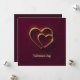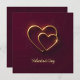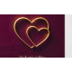 Two Overlapping hearts with a gold outline on a deep red background, with a soft