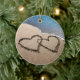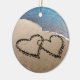 Beautiful, original photo of two hearts written in the sand along the blue ocean water to signify love and romance. Great concept for love, travel, and upcoming summer weddings. A fun and unique keepsake Christmas, Valentine's Day, or other holiday, ornament to give to that special someone, bride and groom or any sweethearts couple.