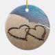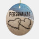 Easily add your own custom names or any text to personalize this beautiful ornament with an original photo of two hearts written in the sand along the blue ocean water to signify love and romance. Great concept for love, travel, and upcoming summer weddings. A fun and unique keepsake ornament to give to that special someone, girlfriend or boyfriend, bride and groom or any sweethearts couple.