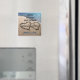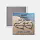 Beautiful, original photograph of two hearts written, drawn in the sand along the blue ocean water to signify love and romance. Easily insert the date of the special big day and put your custom names in the hearts to personalize. Great concept for upcoming summer beach destination wedding Save The Date, or easily change the text for thank you party favors, etc. A unique, custom square shaped magnet keepsake for your guests.