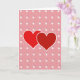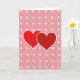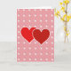 This card shows two red hearts in the middle, slightly overlapping as if they’re leaning into each other. Each heart has a thin white outline that helps it stand out from the background. Behind them is a soft rose-pink backdrop with tiny darker pink specks scattered around like gentle confetti. Across the background, there’s a repeating pattern of small white circles, and inside each one are two short lines that look like simple clock hands. The little circles have light shadows, which gives the design a bit of depth without feeling busy. There isn’t any text on the front, so the picture does all the talking and leaves room for your own words inside. It feels meaningful because it quietly says “we’re connected” and “our time together matters,” which fits romance or close friendship 🥰❤️.