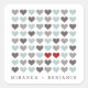 Trendy dusty blue, gray and slate color palette features a contemporary grid of hearts surrounding the two special red hearts that represent the bride and groom. A modern wedding design, with a contemporary blend of format and typography for styling that is simple, yet striking. Coordinating items in the "Two Hearts" collection include invitations, reception cards, rsvp cards, stickers, labels and favor tags.