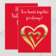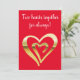 Two hearts together metallic gold red holiday card