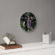 Two beautiful hummingbirds flying with purple flowers wall clock