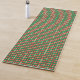 "Two identical sections of colorful geometric pattern; the top is vertical, the bottom horizontal. The design is green, red, white, with circular and diamond shapes on a white background."