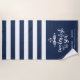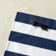 A perfect addition to your wedding welcome bags, or a sweet personalized honeymoon gift, this nautical navy and white striped beach towel features "two less fish in the sea" in white brush lettering with two kissing fish. Personalize with the couple's names, wedding date and location.
